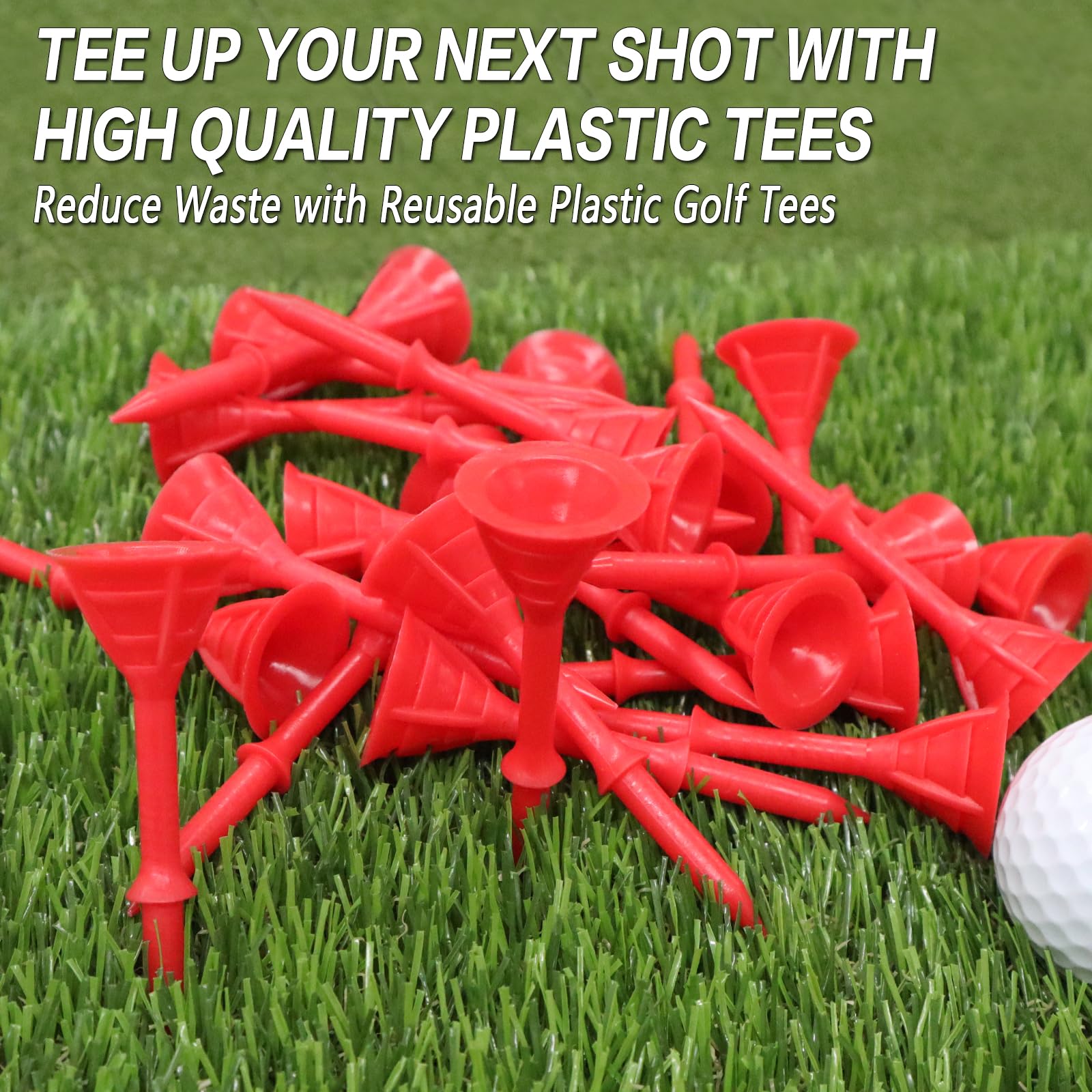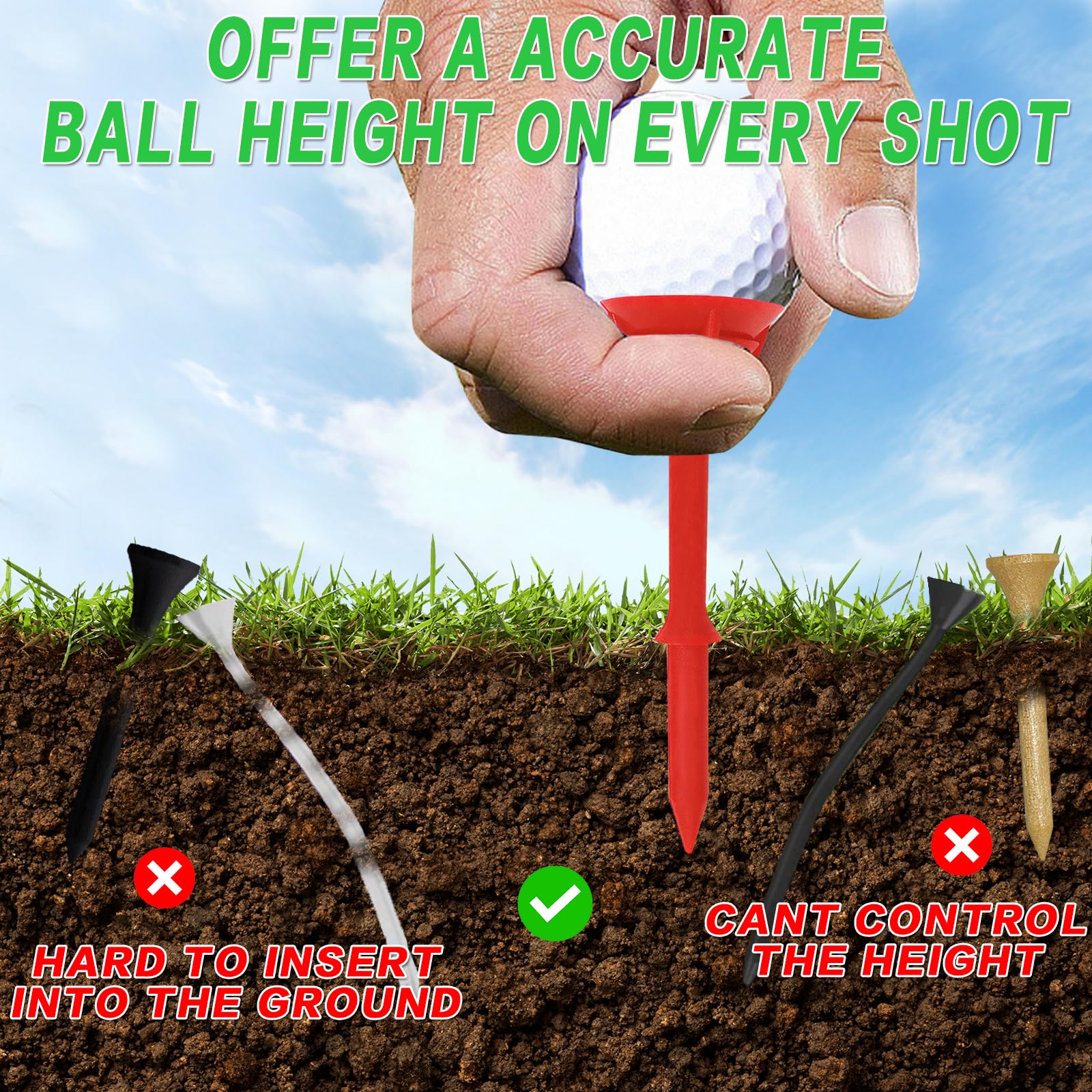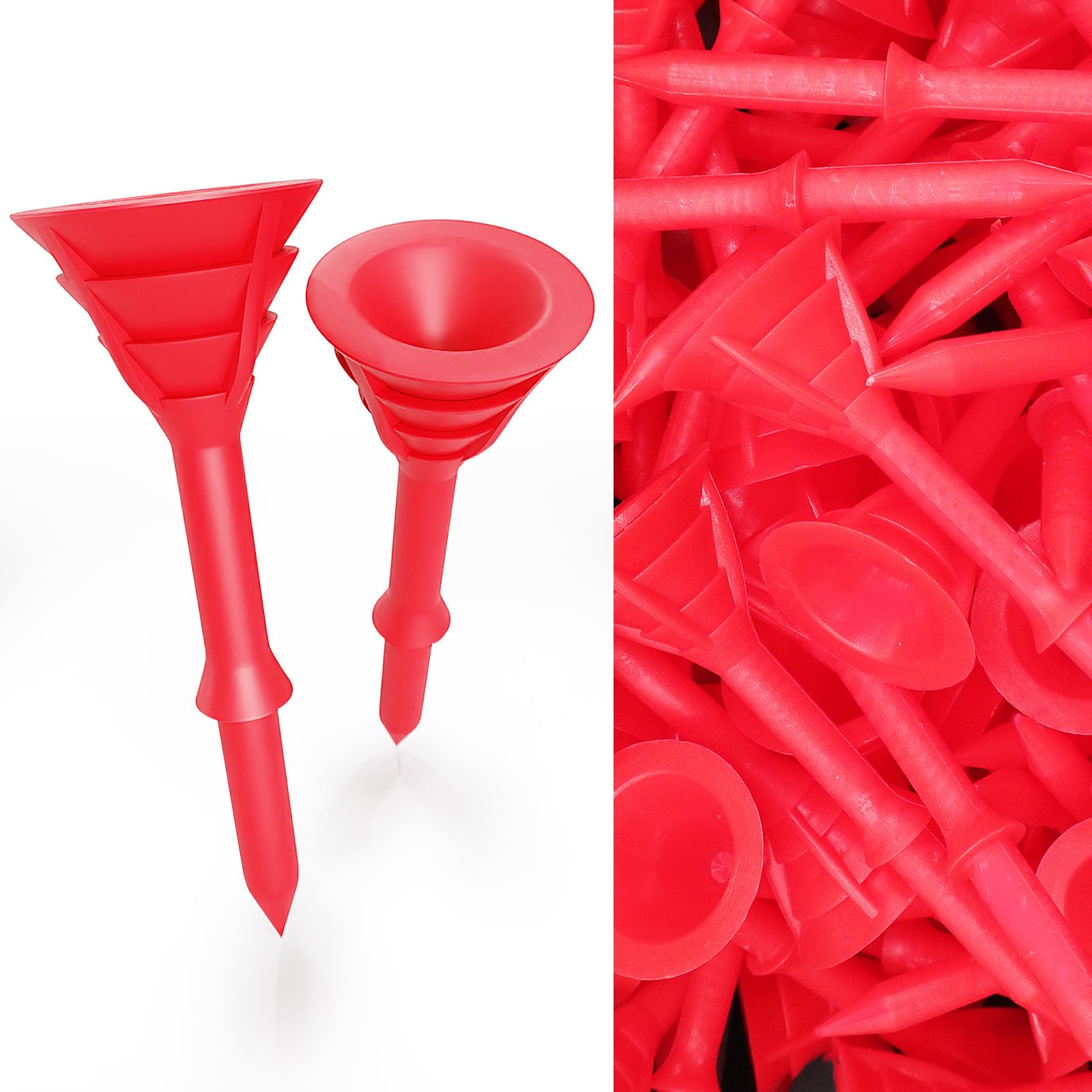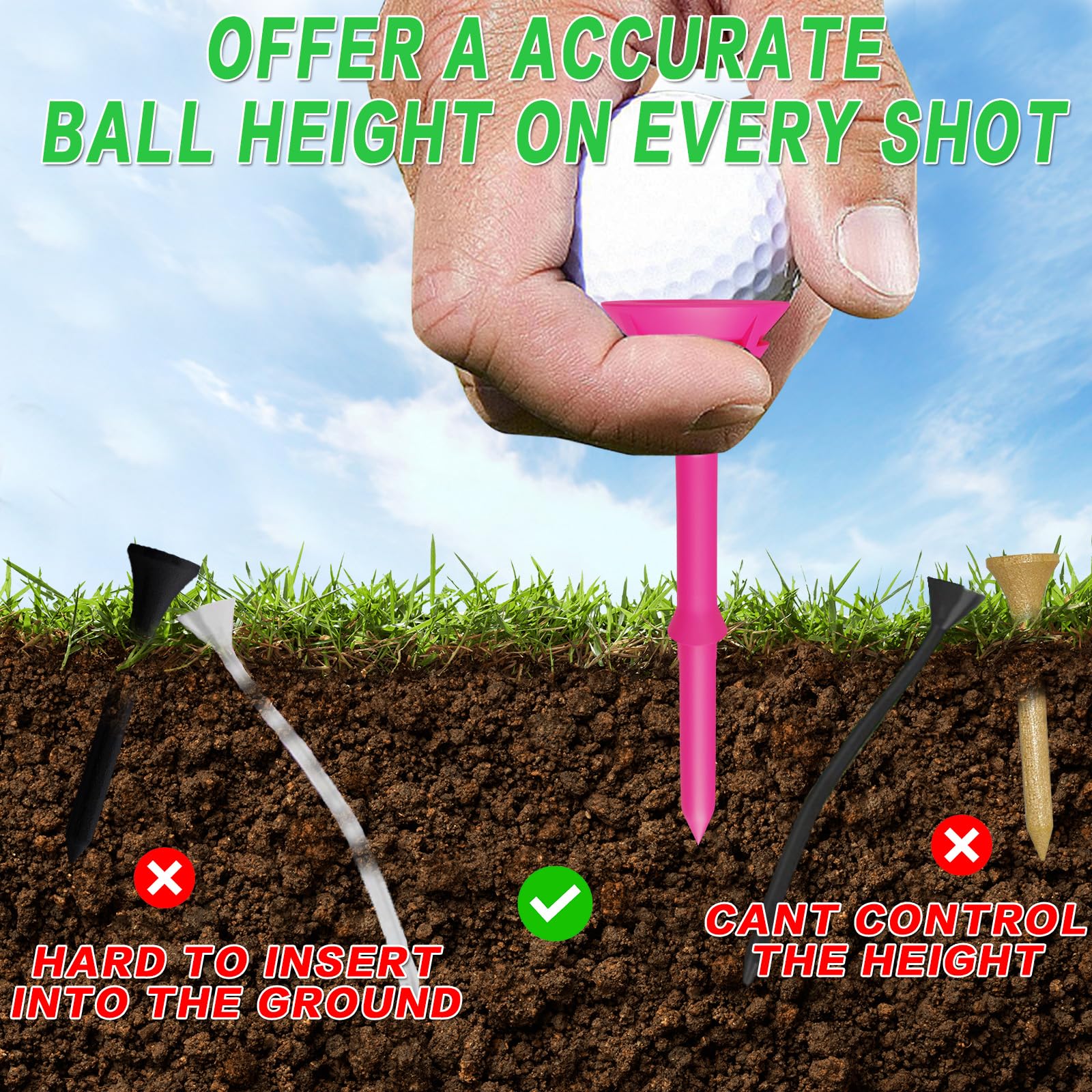7 Colors Available: The Plastic Tees Come in 7 Colors of Green, Blue, Red, Pink, Pouple, Orange and White, Making Them Easier to Locate After Taking Your Shot. Available 3 1/4 Inch( 83mm). Can Provide You with a Longer and Straighter Drive than the Wooden Tee.