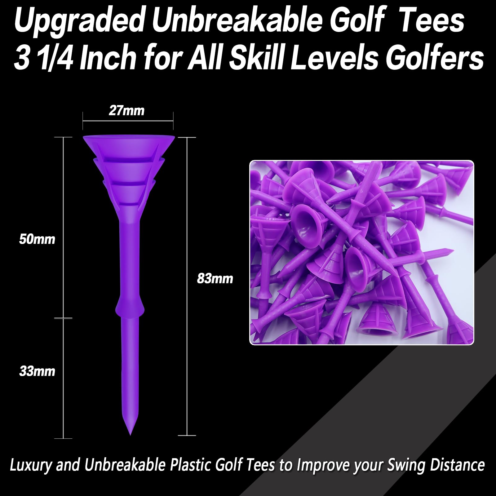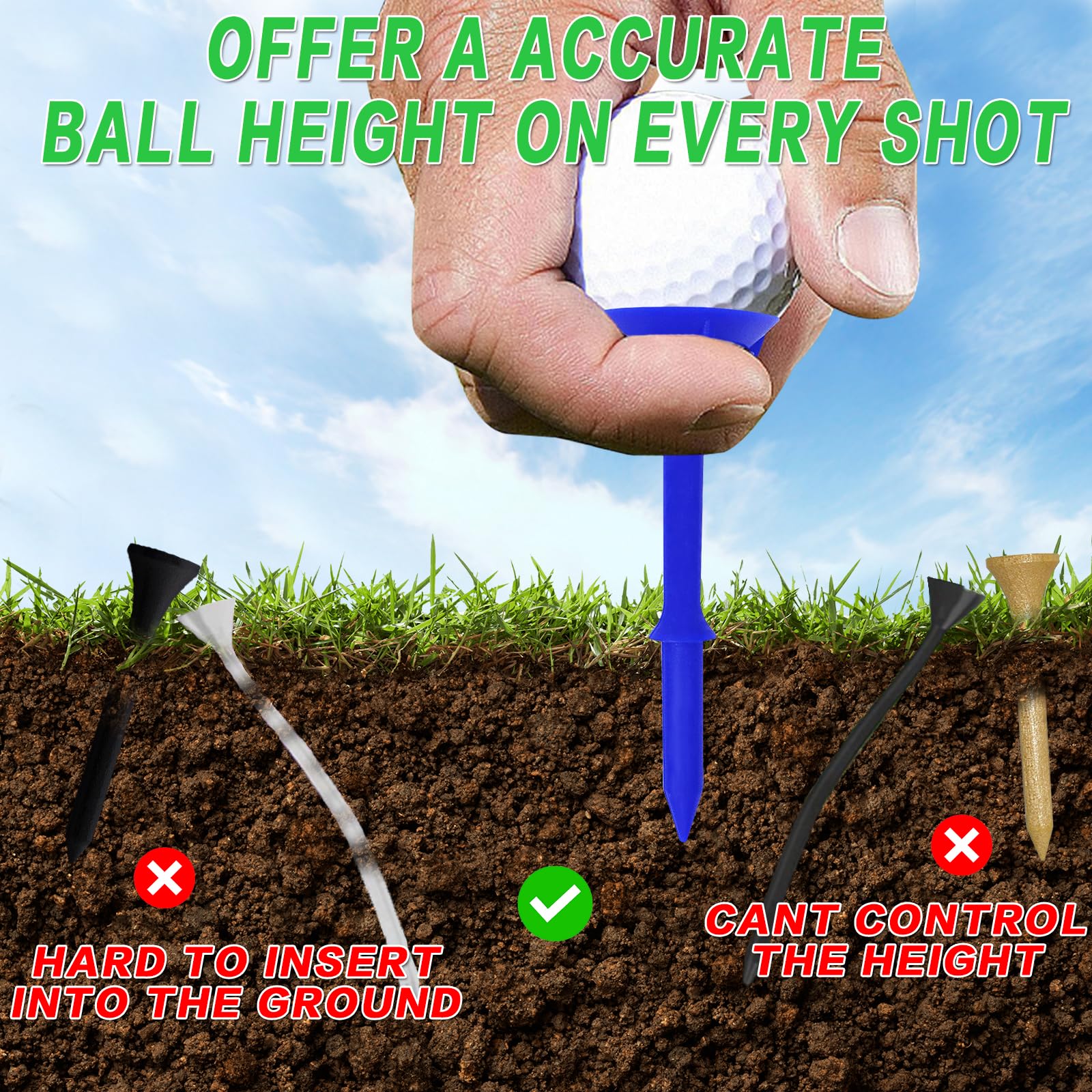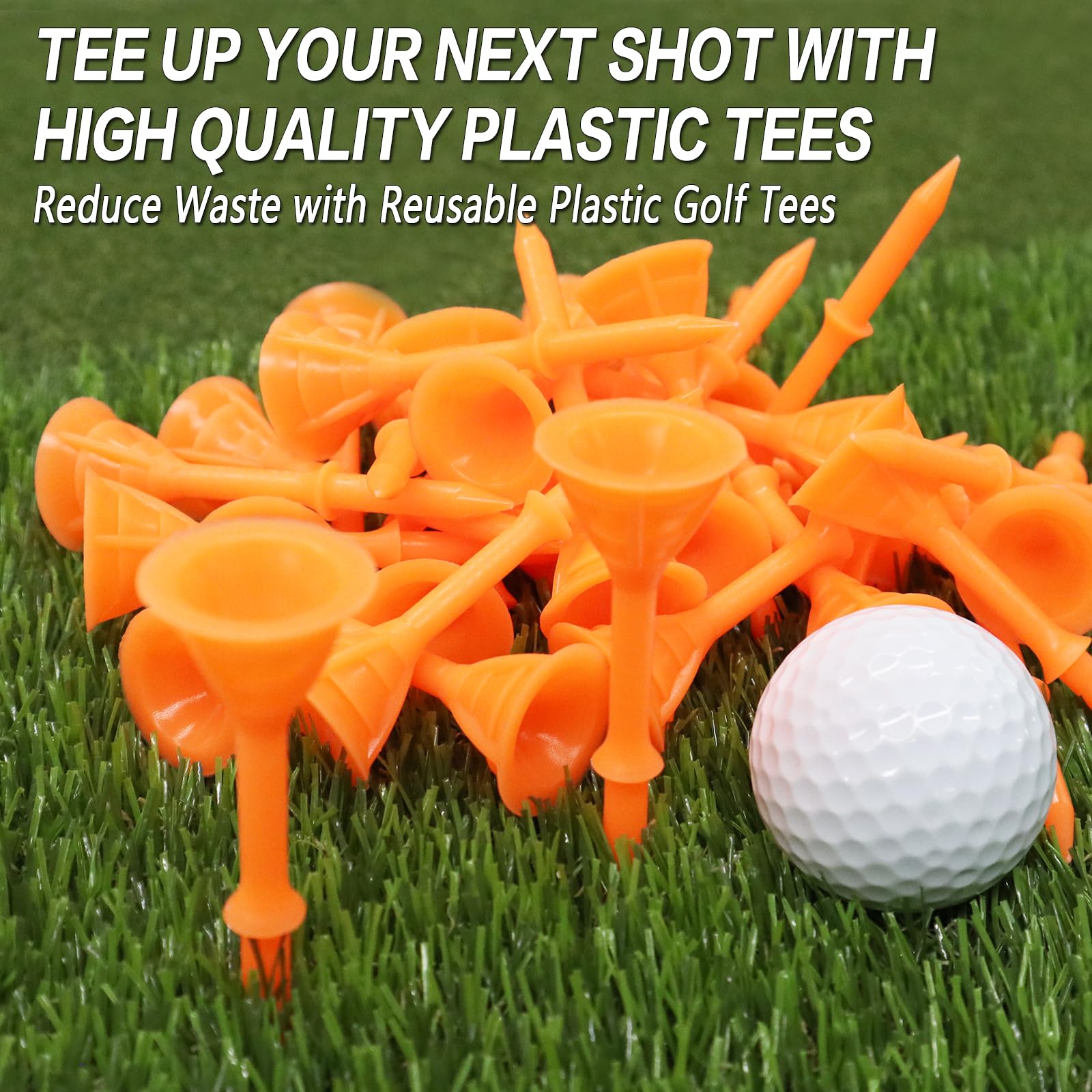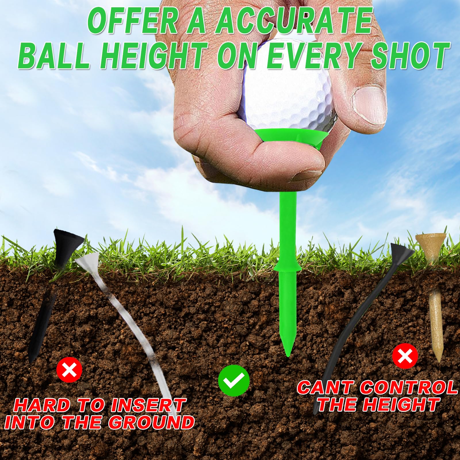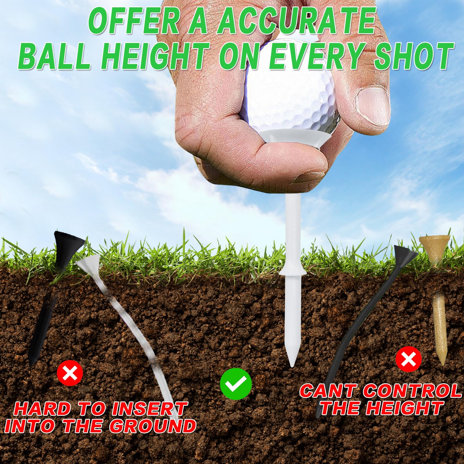 7 Colors Available: The Plastic Tees Come in 7 Colors of Green, Blue, Red, Pink, Pouple, Orange and White, Making Them Easier to Locate After Taking Your Shot. Available 3 1/4 Inch( 83mm). Can Provide You with a Longer and Straighter Drive than the Wooden Tee.