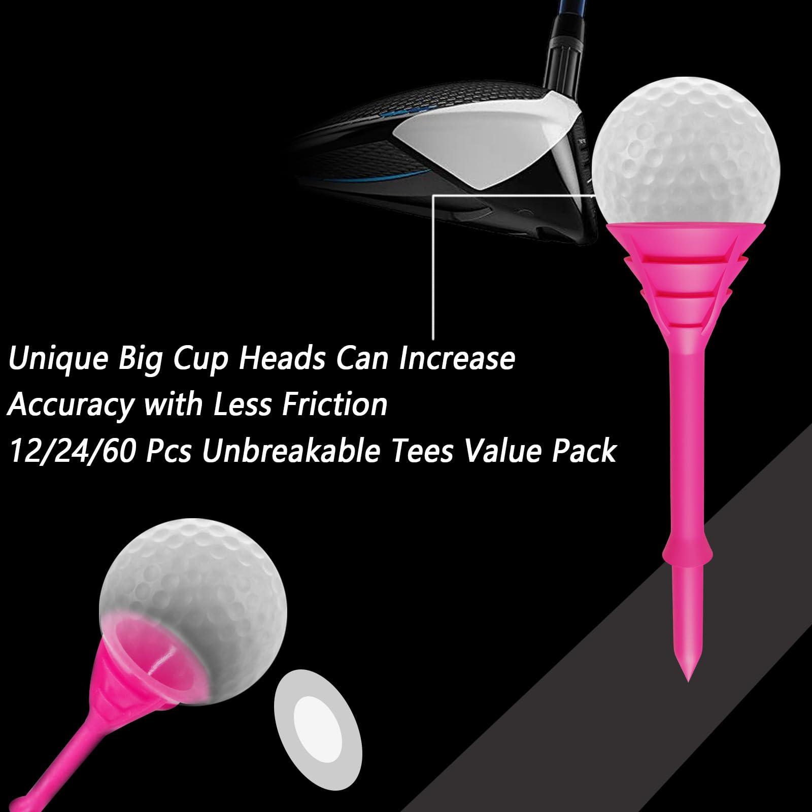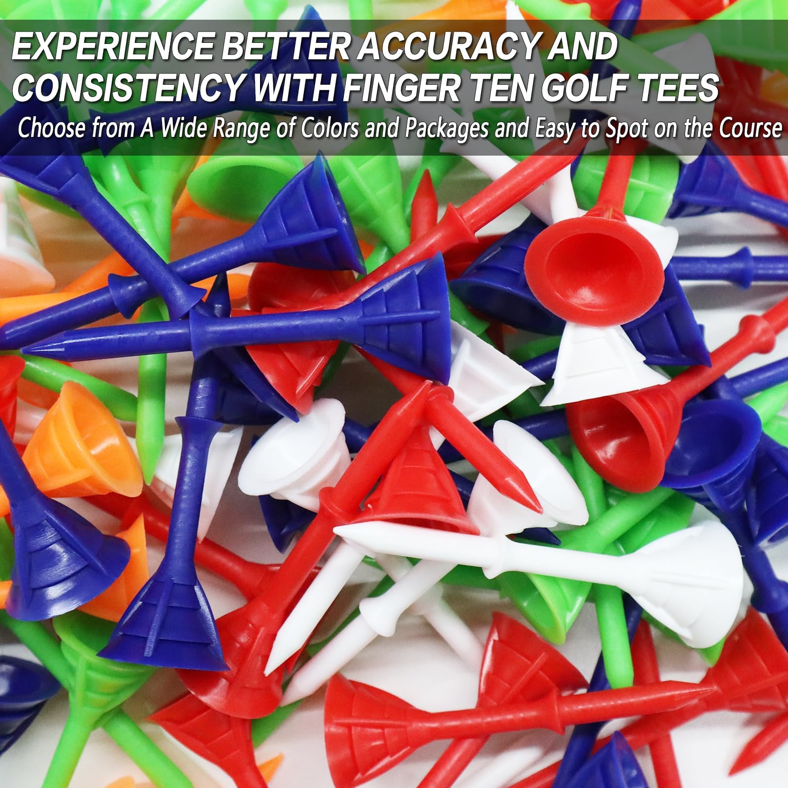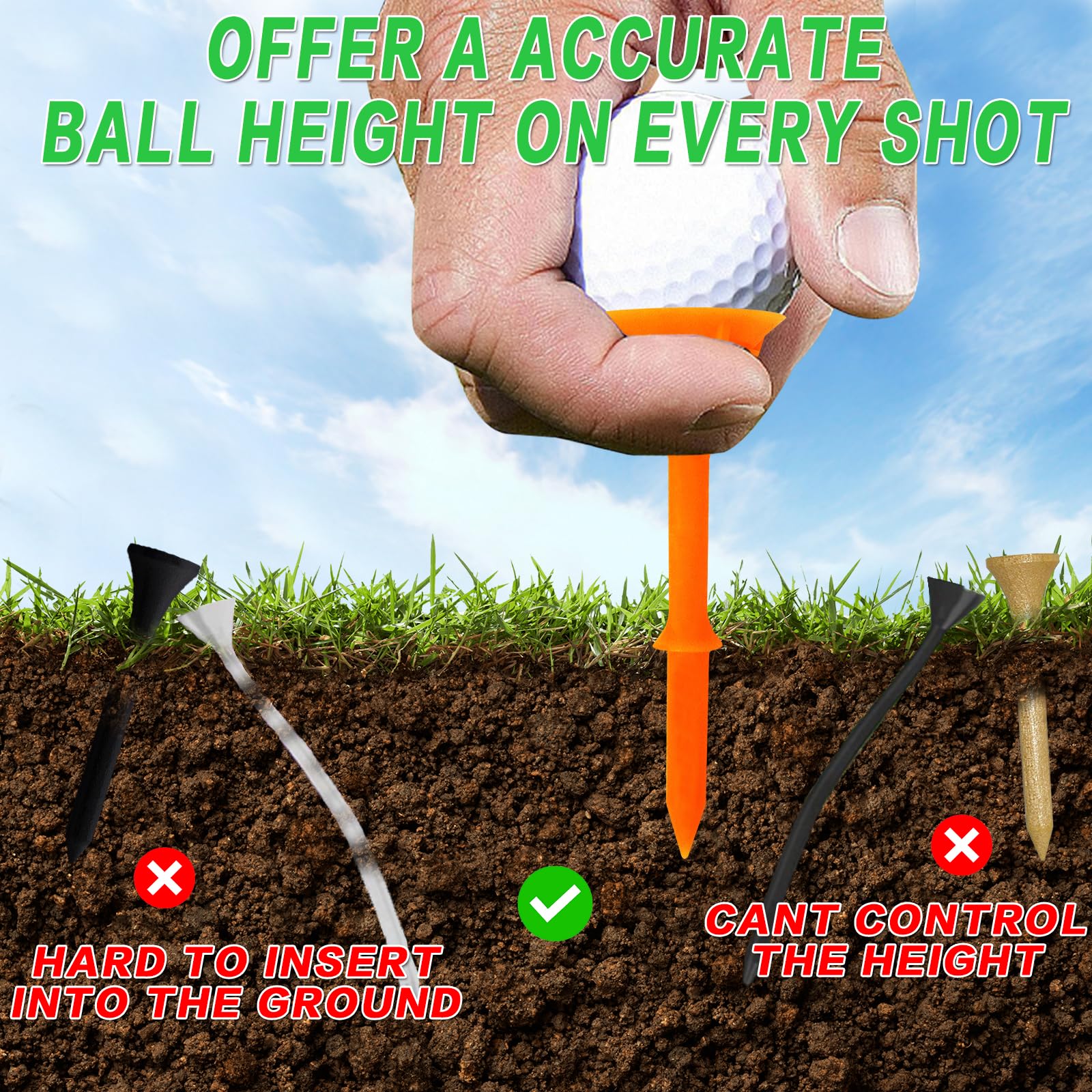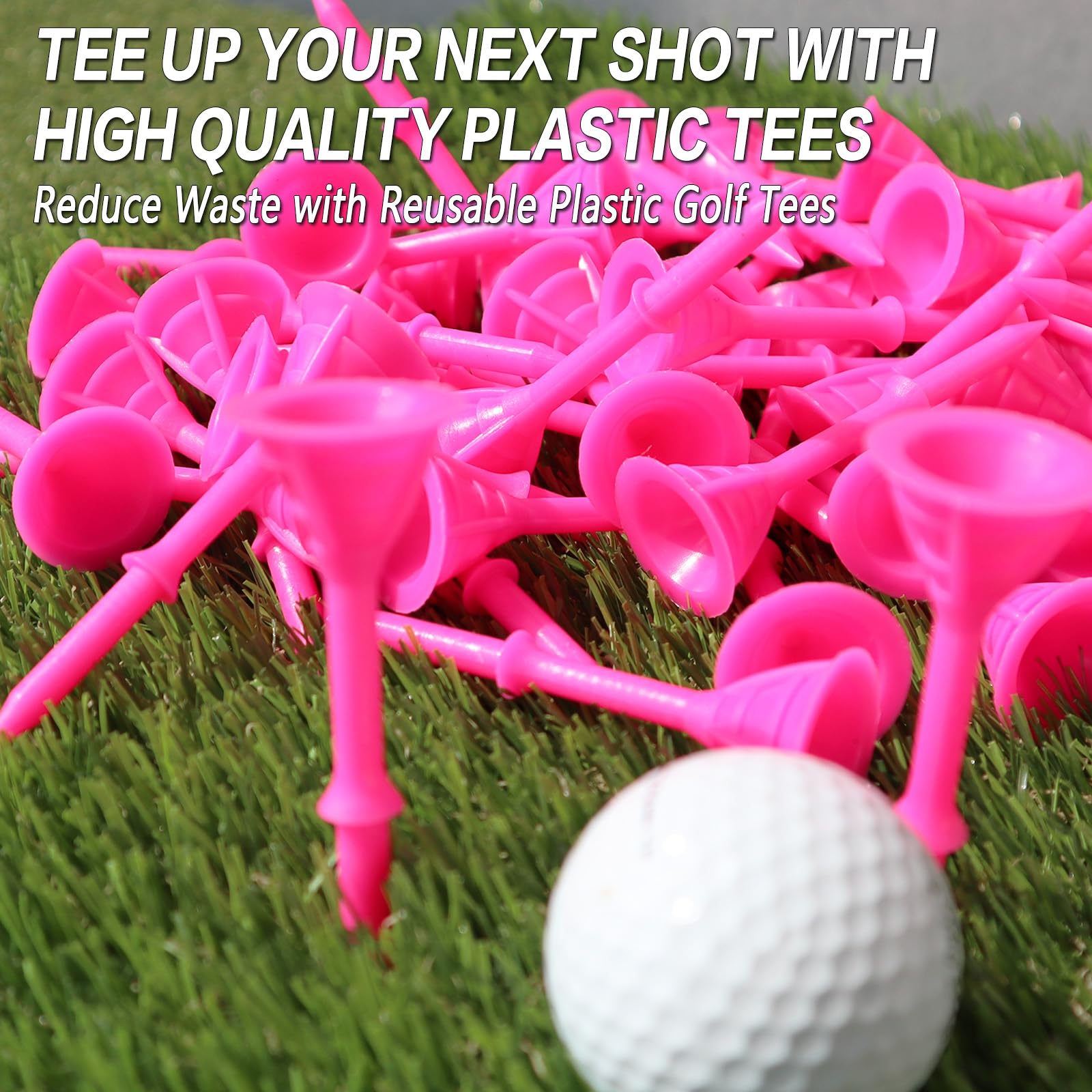 7 Colors Available: The Plastic Tees Come in 7 Colors of Green, Blue, Red, Pink, Pouple, Orange and White, Making Them Easier to Locate After Taking Your Shot. Available 3 1/4 Inch( 83mm). Can Provide You with a Longer and Straighter Drive than the Wooden Tee.