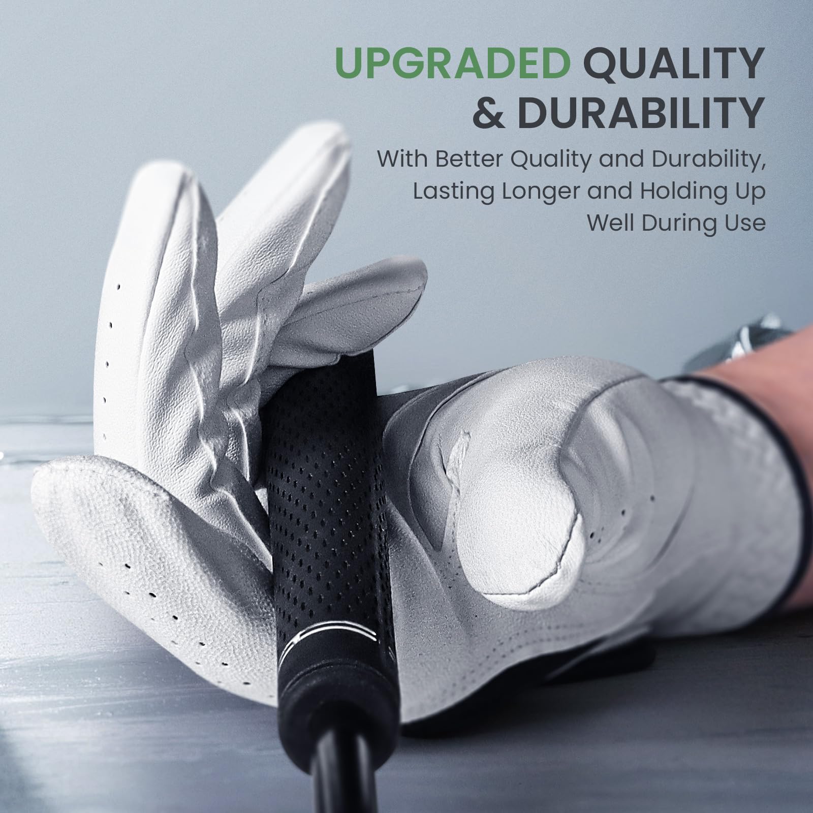Premium Leather Quality: Our golf gloves for men are crafted with high-quality leather on the left hand, ensuring durability and a luxurious feel. The leather provides an excellent grip on the club, allowing for more accurate shots and enhanced control.