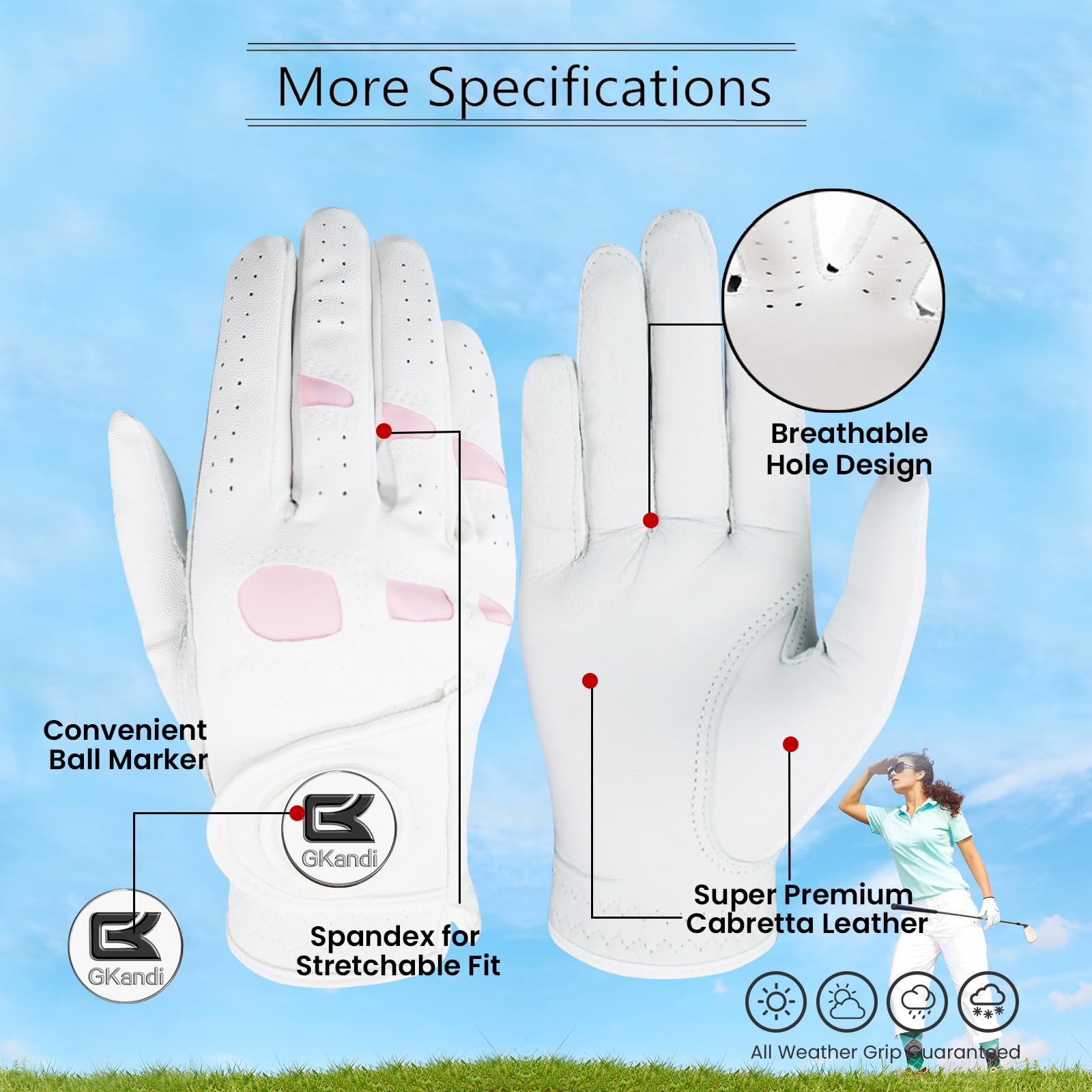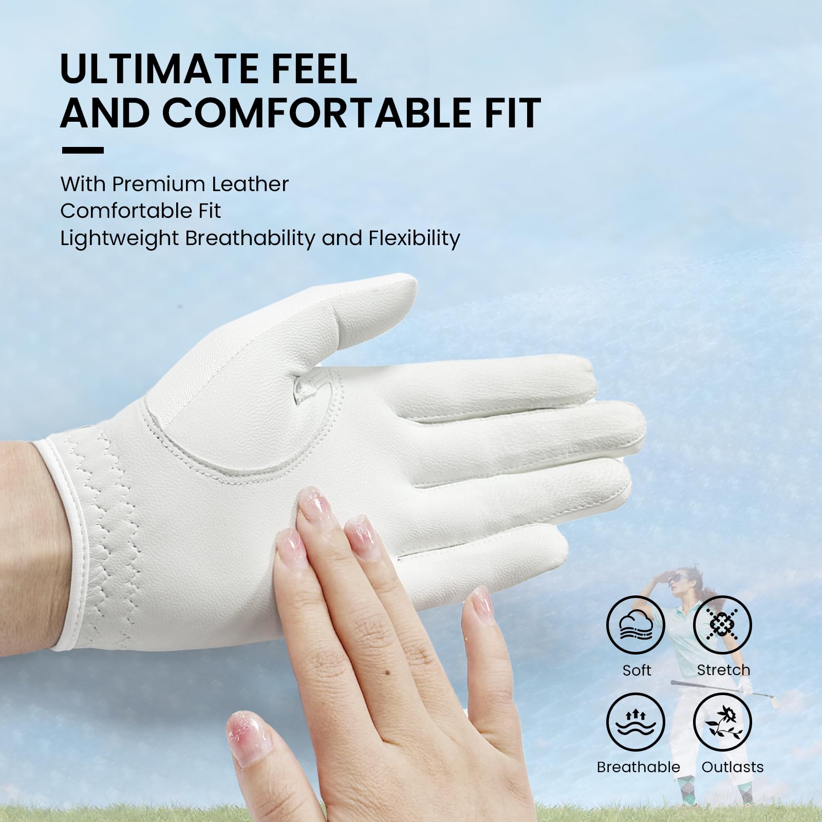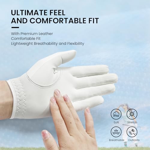 Premium Leather and ultimate feel: Crafted with premium cabretta leather, stretchable fit and Reinforced seams deliver unmatched softness and durability, offering comfortable fit for both left-handed golfers or right-handed golfers.