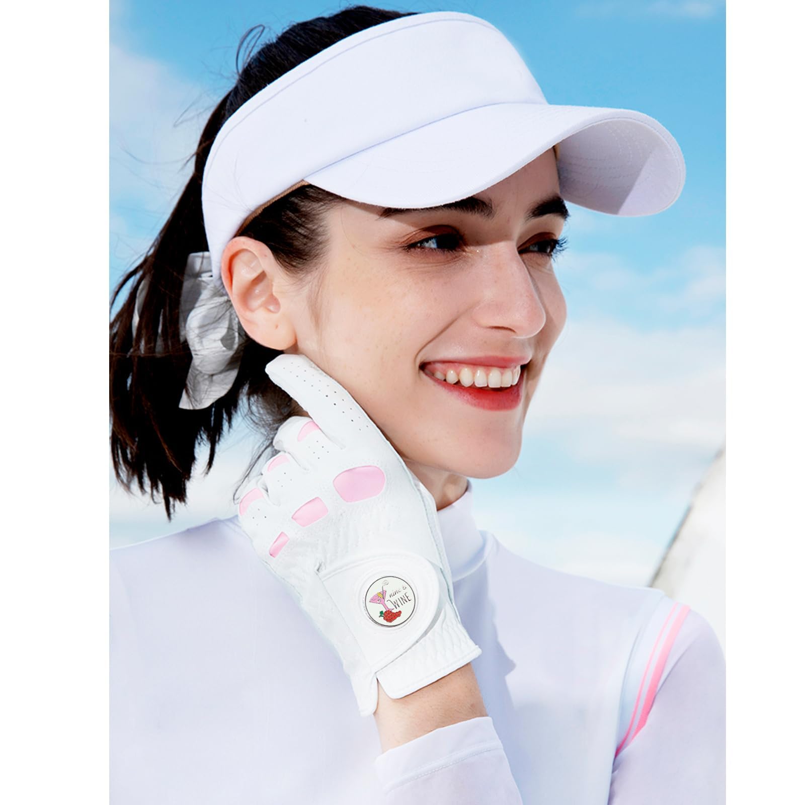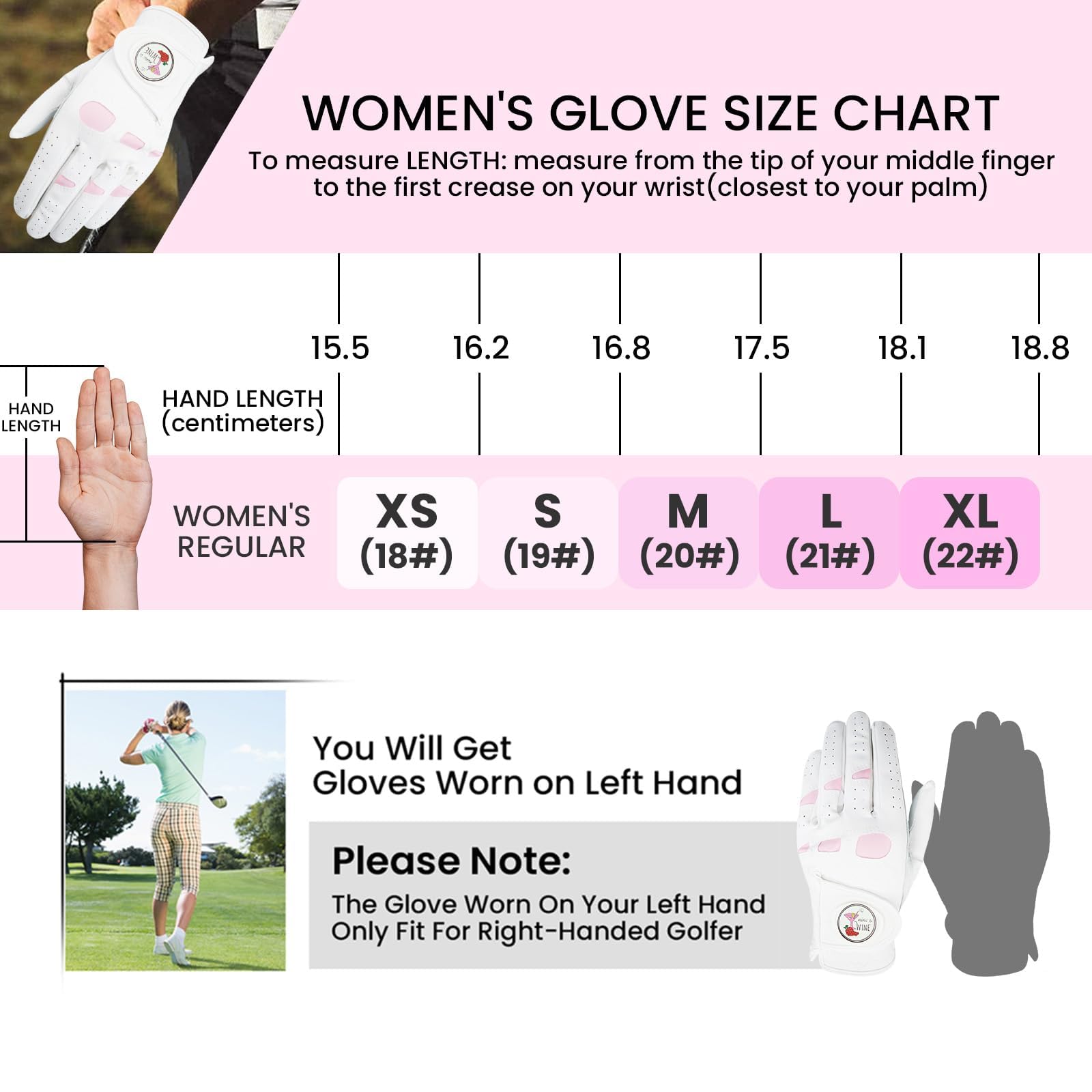 Stylish Pink and Breathable: Stylish pink and white with breathable hole that keeps hands cool and complementing ladies' golf apparel. Tailored for womens’ hand shapes, size small, medium, large and chic appeal.
