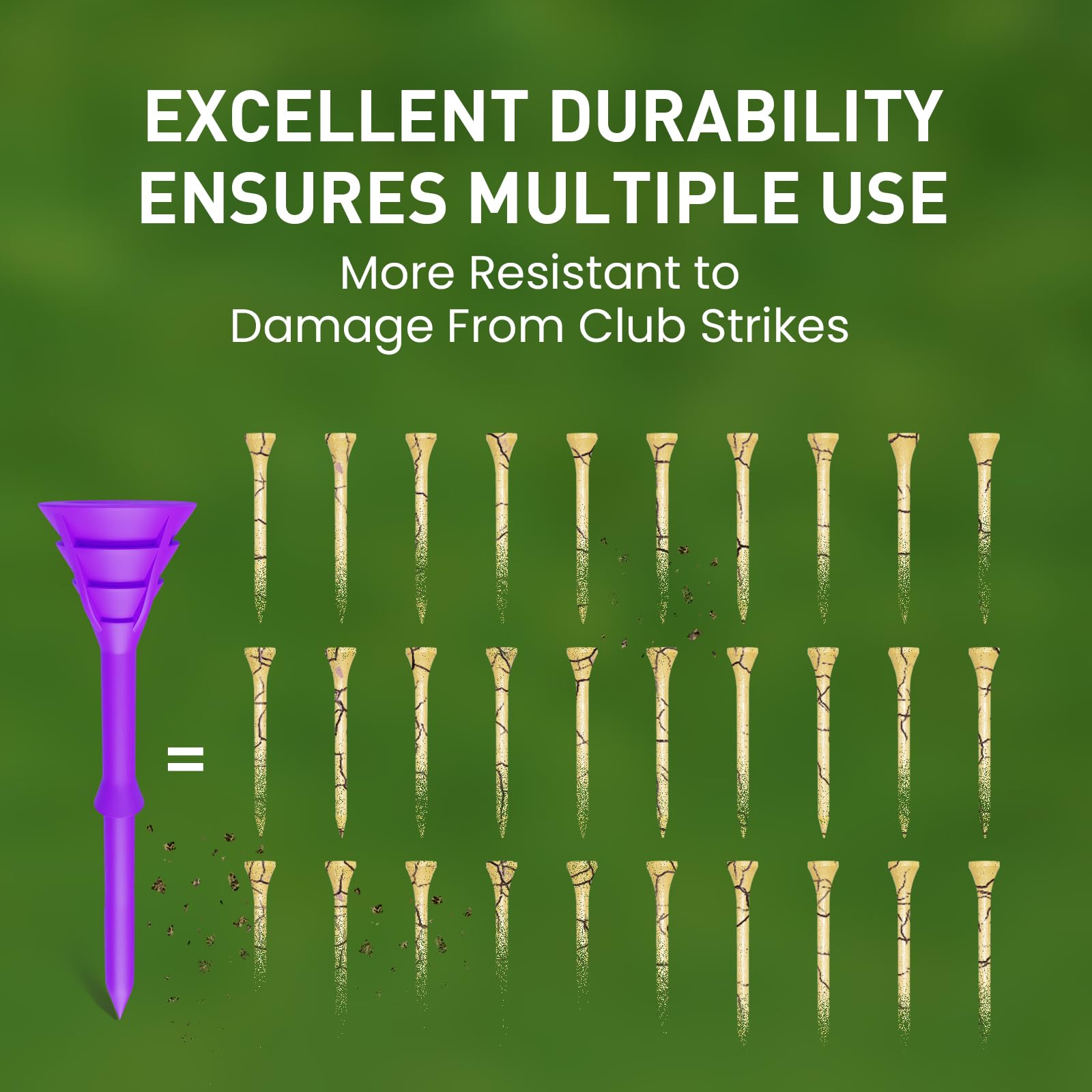 Unbreakable and Durable: Made from High Quality Plastic, Light-Weighted and Durable, Easy to Carry Around,Much Stronger than Old-Fashioned Wooden Tees, One Tee can be repeated use on the course;