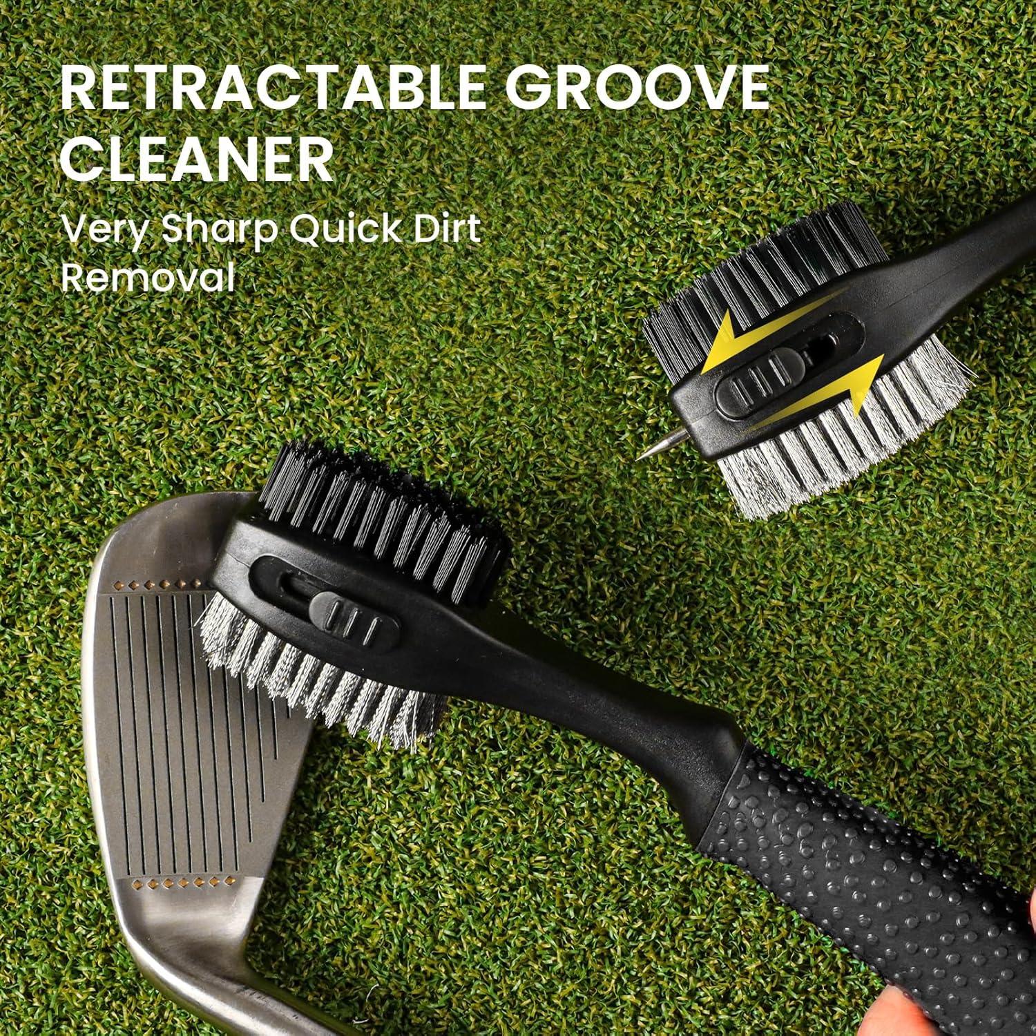 Powerful Golf Cleaning Tool: Our FINGER TEN golf club cleaner is a must-have tool for every golfer. With dual-action nylon and wire bristles, it tackles stubborn dirt on clubs and balls like a dedicated greenskeeper. The oversized brush head delivers 30% more cleaning coverage than standard brushes, while the retractable design slips seamlessly into your golf bag, ready for any course challenge.