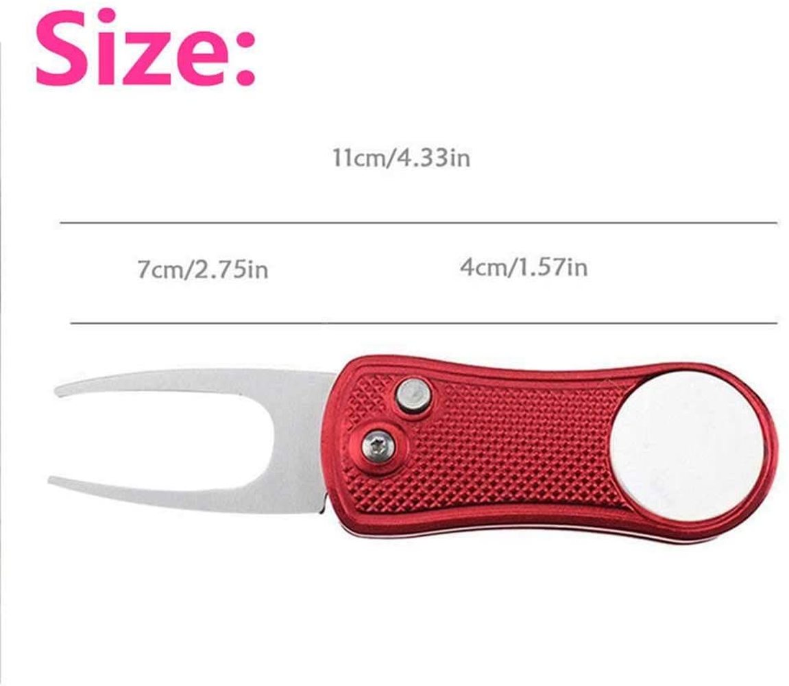 HIGH QUALITY: Made from High Quality Stainless Steel and Aluminum. Golf Divot Tool Dimension: 2.83x1.17x0.5in(Fold) 4.53X1.17X0.5in (Unfold). Weight only 52g/1.83oz;